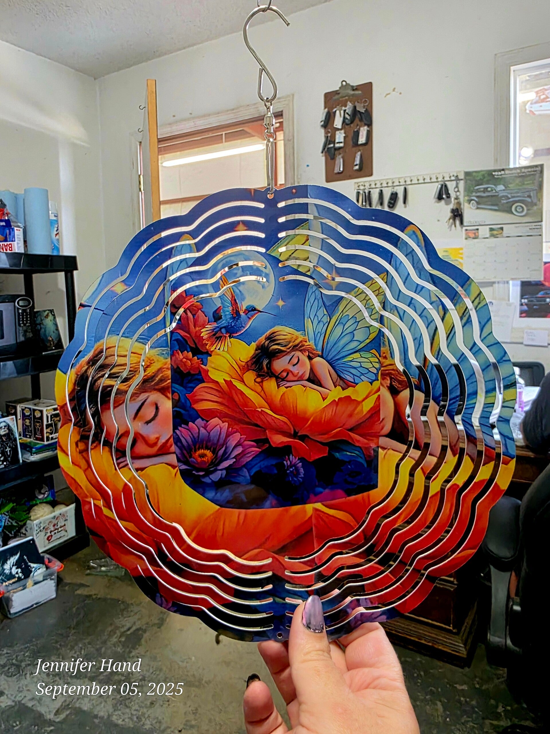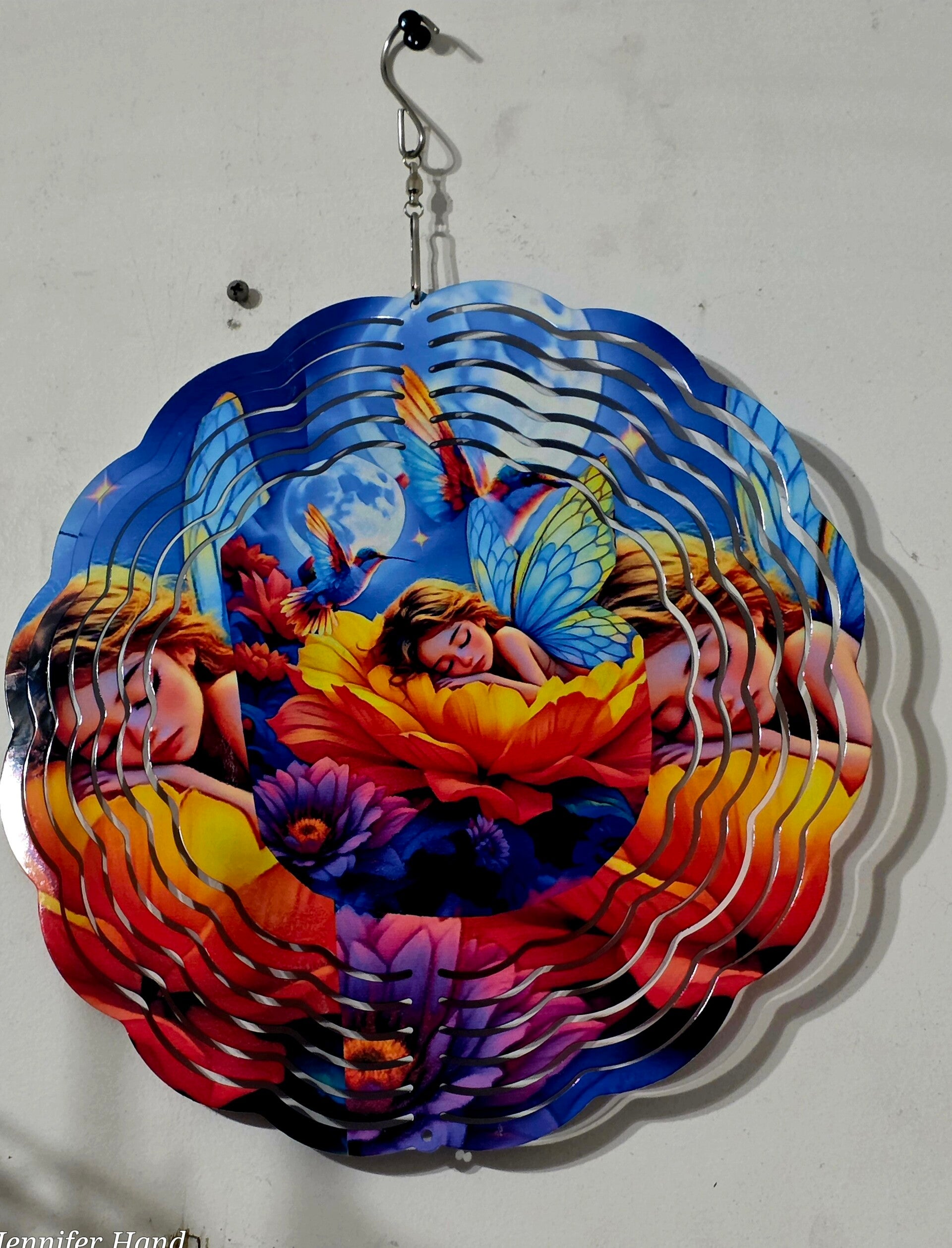 Custom dragonfly fairy wind spinner made from durable metal is available in 8 or 10 inch