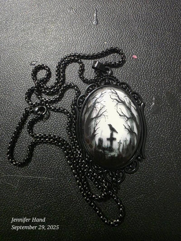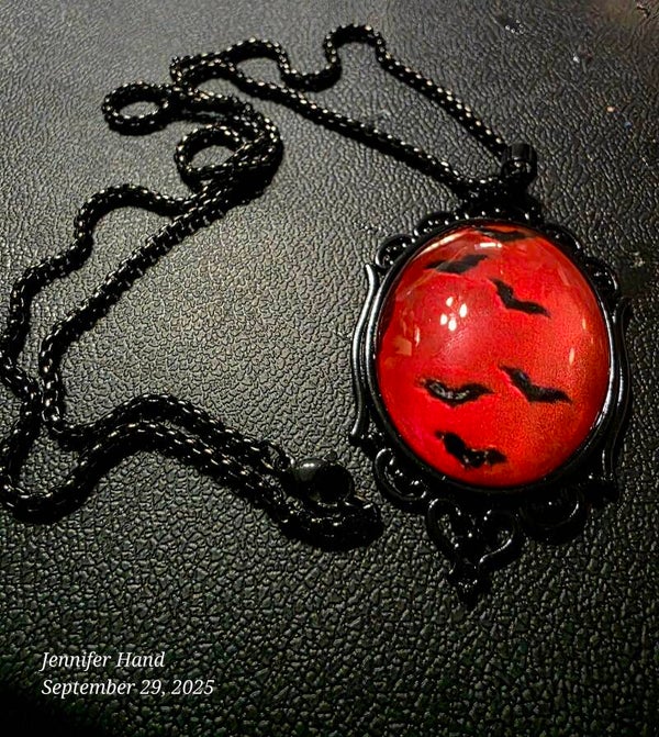 These spooky necklaces are perfect for anyone who loves the Halloween season or bats. They are 24 inches on a stainless steel chain with black acrylic coating. Buy them as a set or individually