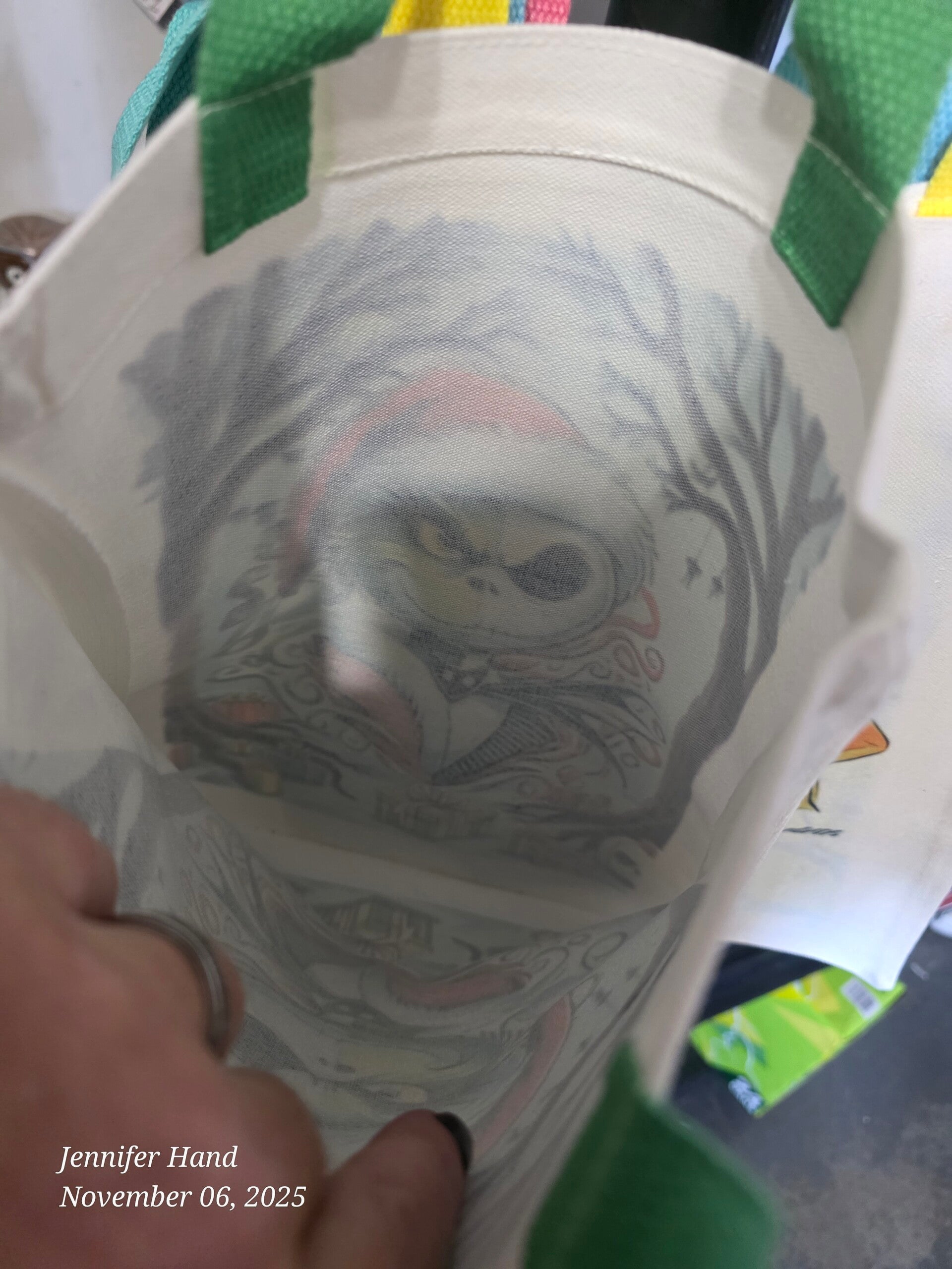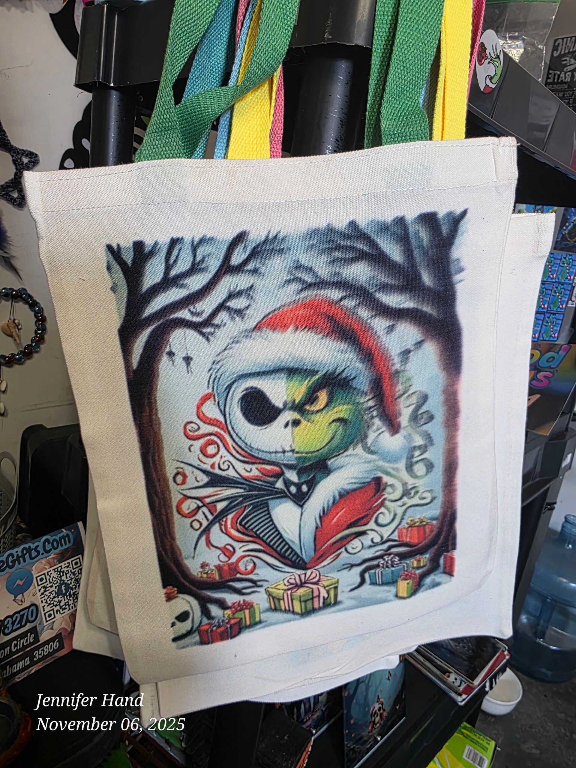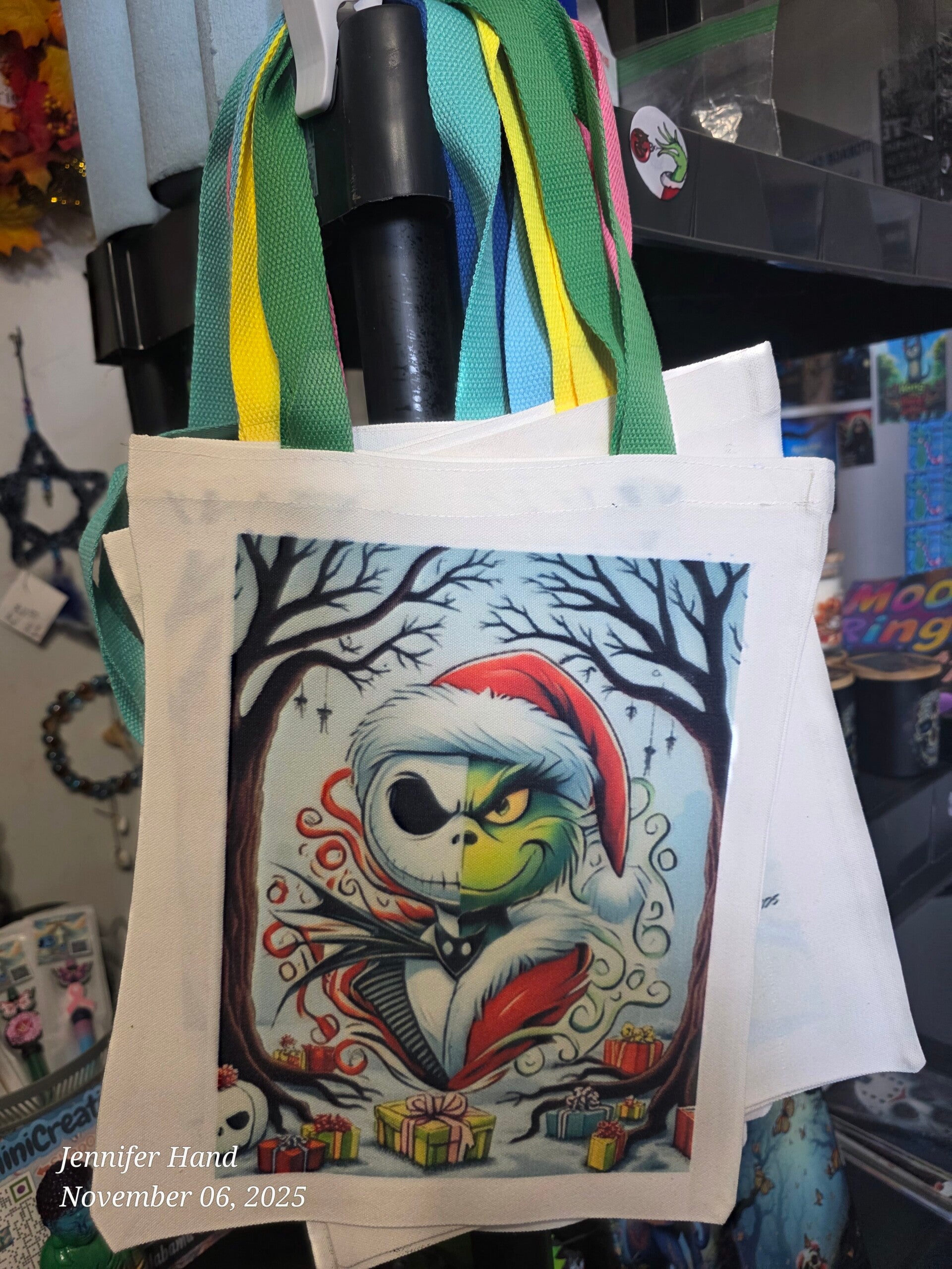 Double the Chaos: Perfect for fans who love both How the Grinch Stole Christmas and The Nightmare Before Christmas. This tote captures the spirit of holiday rebellion and mischievous fun.
