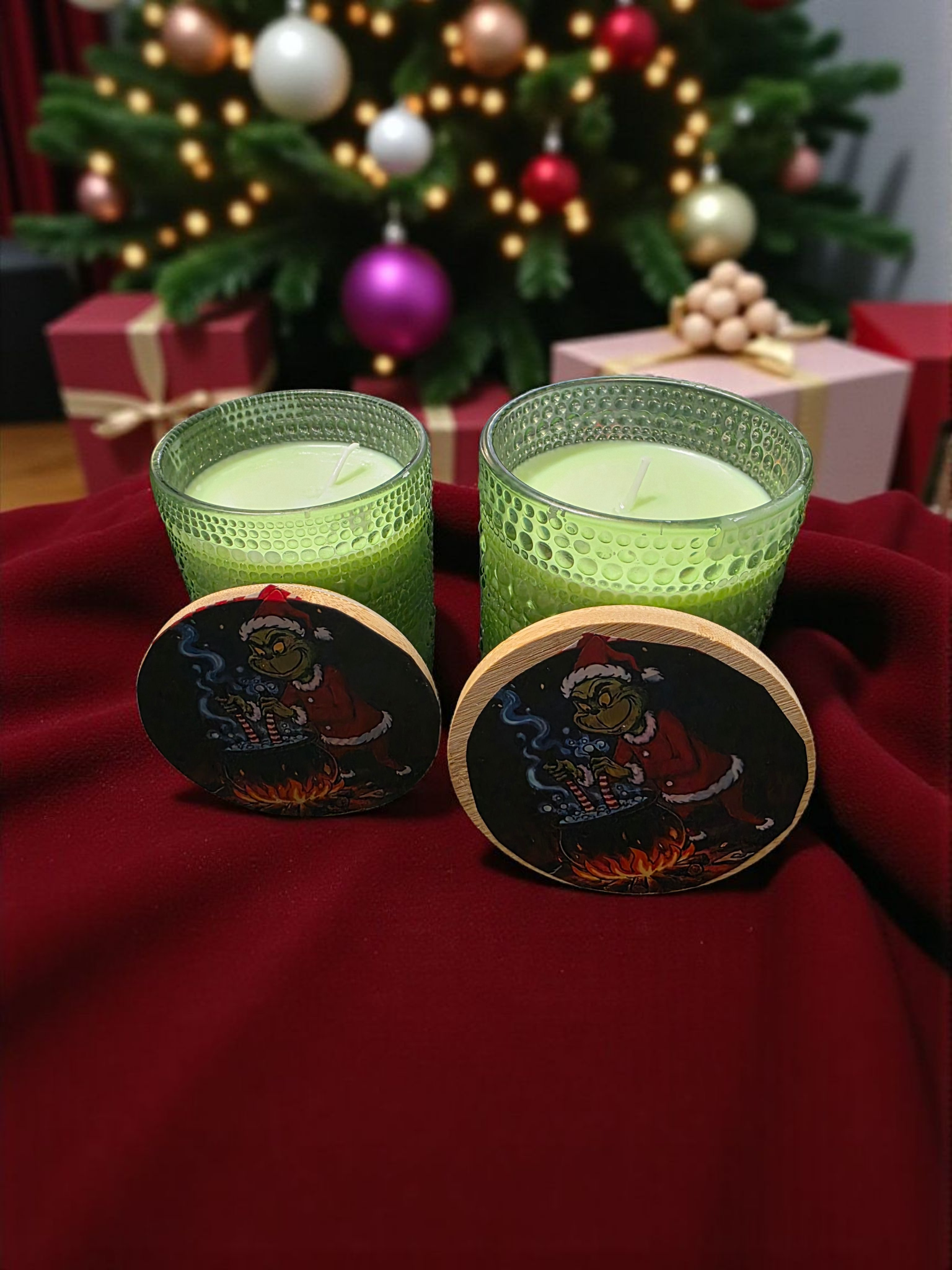 Container: Elegant green glass jar that perfectly matches the Grinch's signature color.
