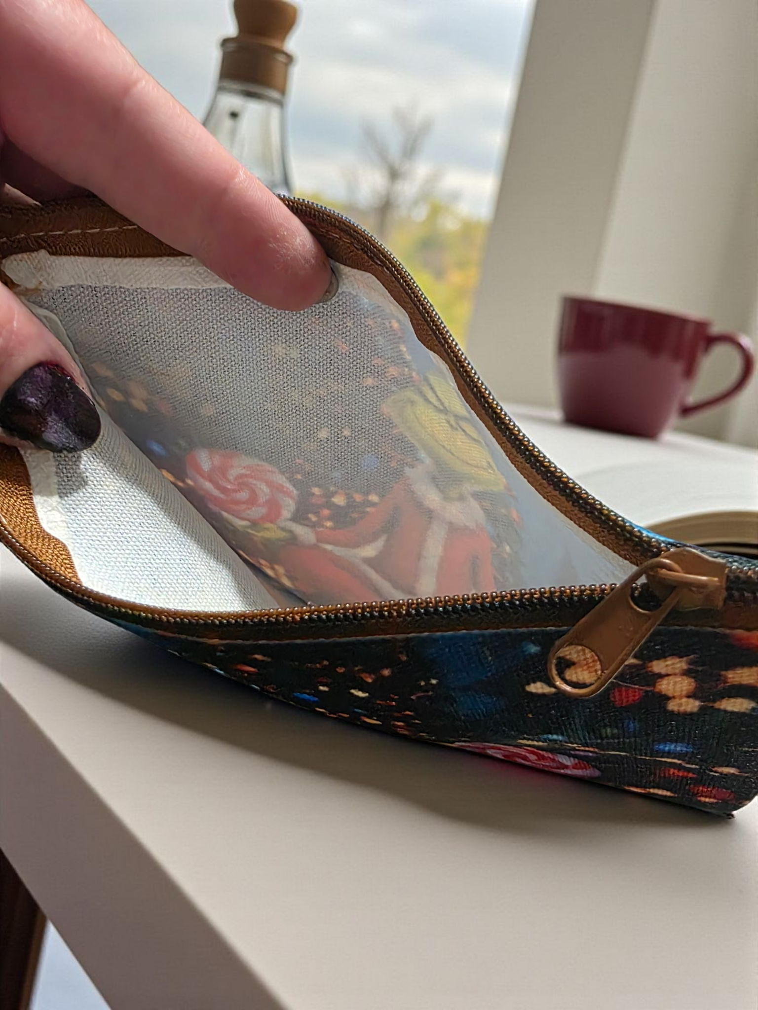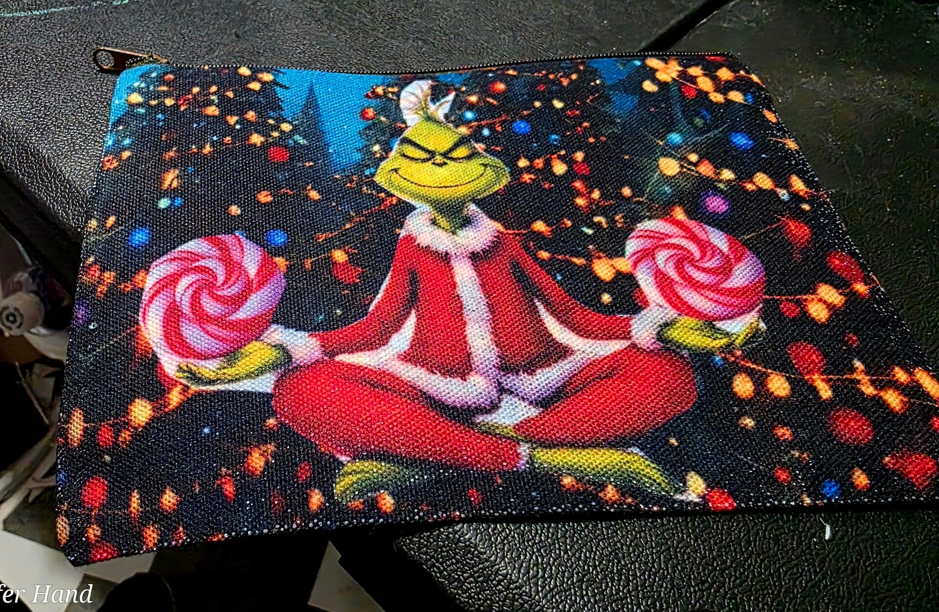 Don't let the holiday stress steal your Christmas! Keep your essentials together with our new Grinch Holiday Zen Zipper Pouch. Whether you use it for makeup, travel toiletries, or just to hold your stuff, this pouch brings the festive vibes without the stress.