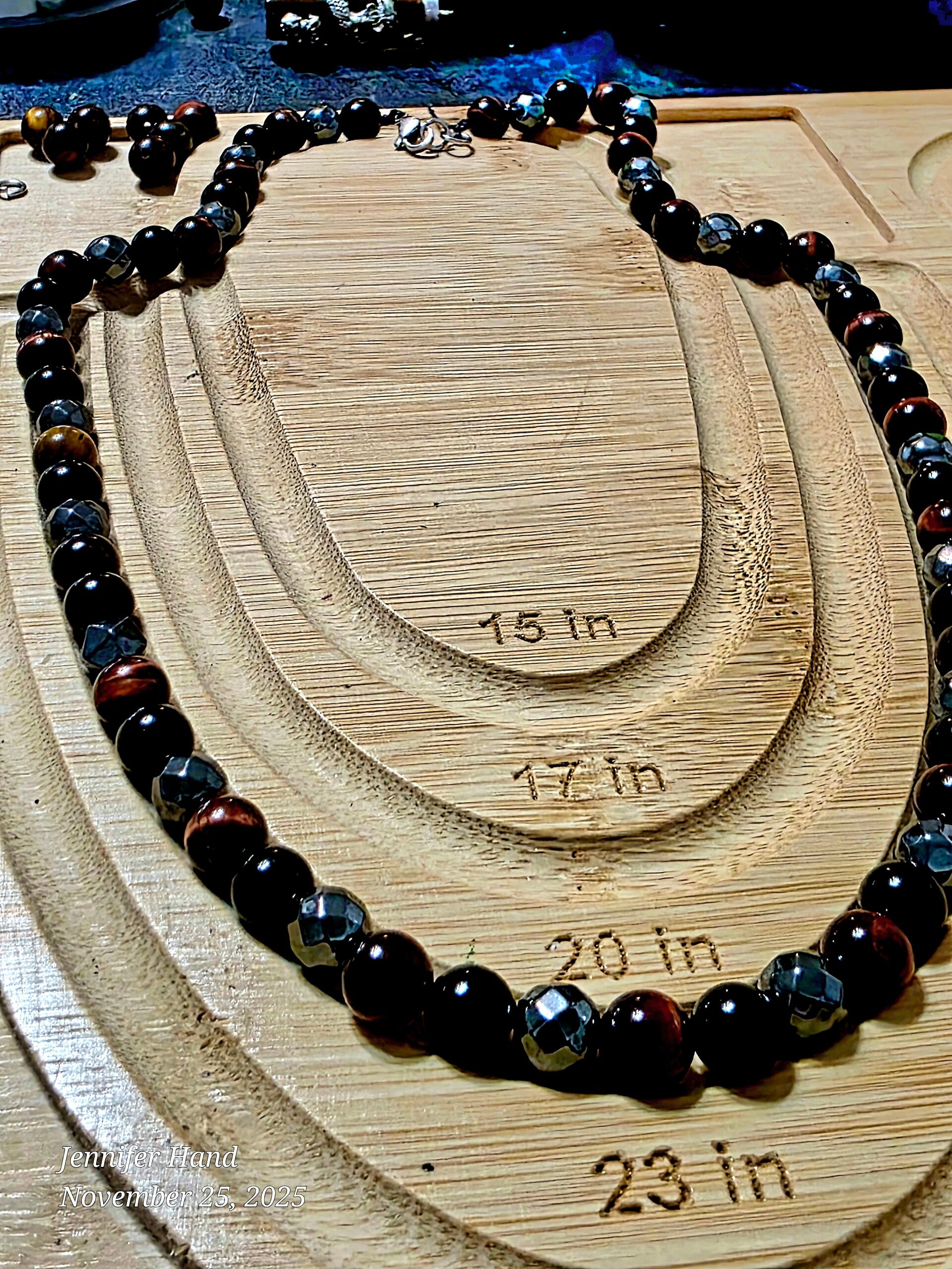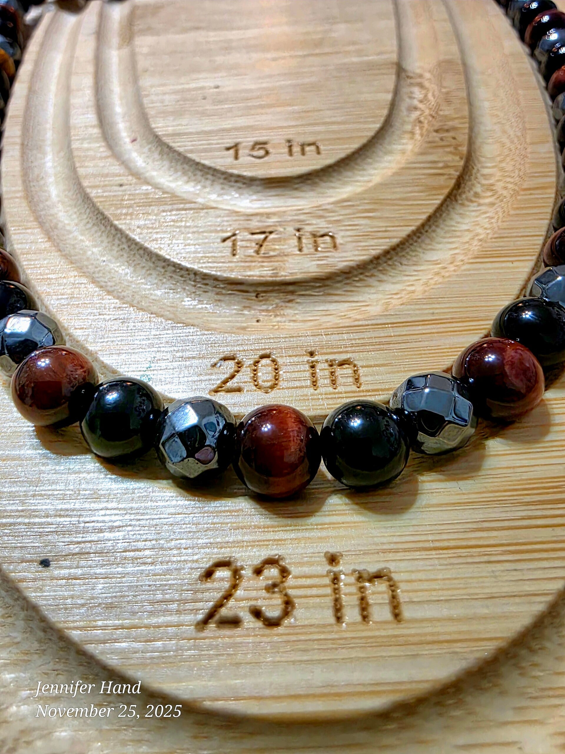 Tiger eye, Obsidian, Hematite 20-in necklace