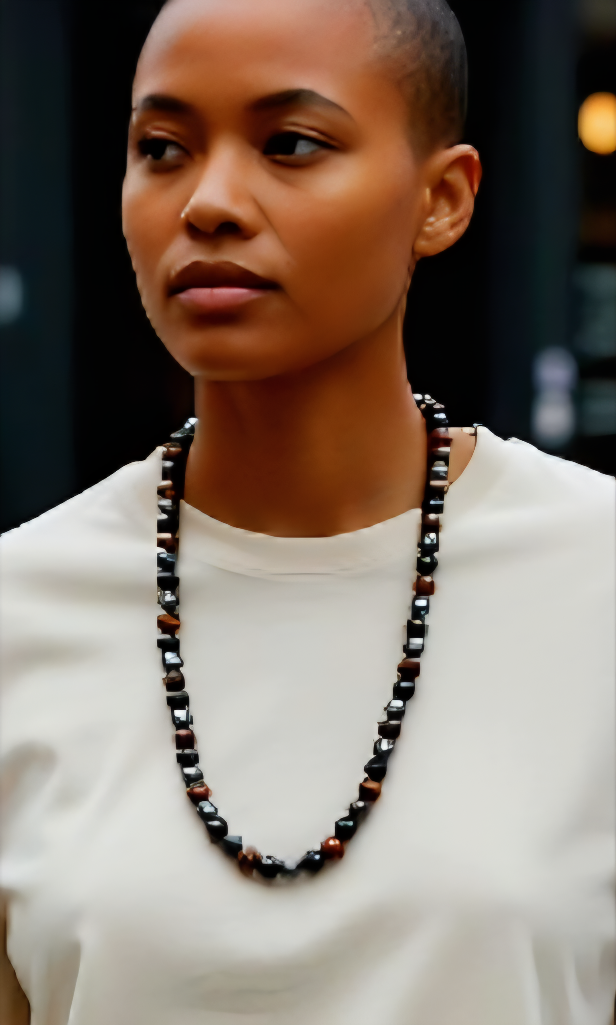 This eye-catching 20-inch necklace features a powerful combination of three distinct 8mm gemstones, carefully strung together to create a piece that is both rugged and refined. Perfect for everyday wear, this beaded choker is a versatile accessory for any wardrobe.