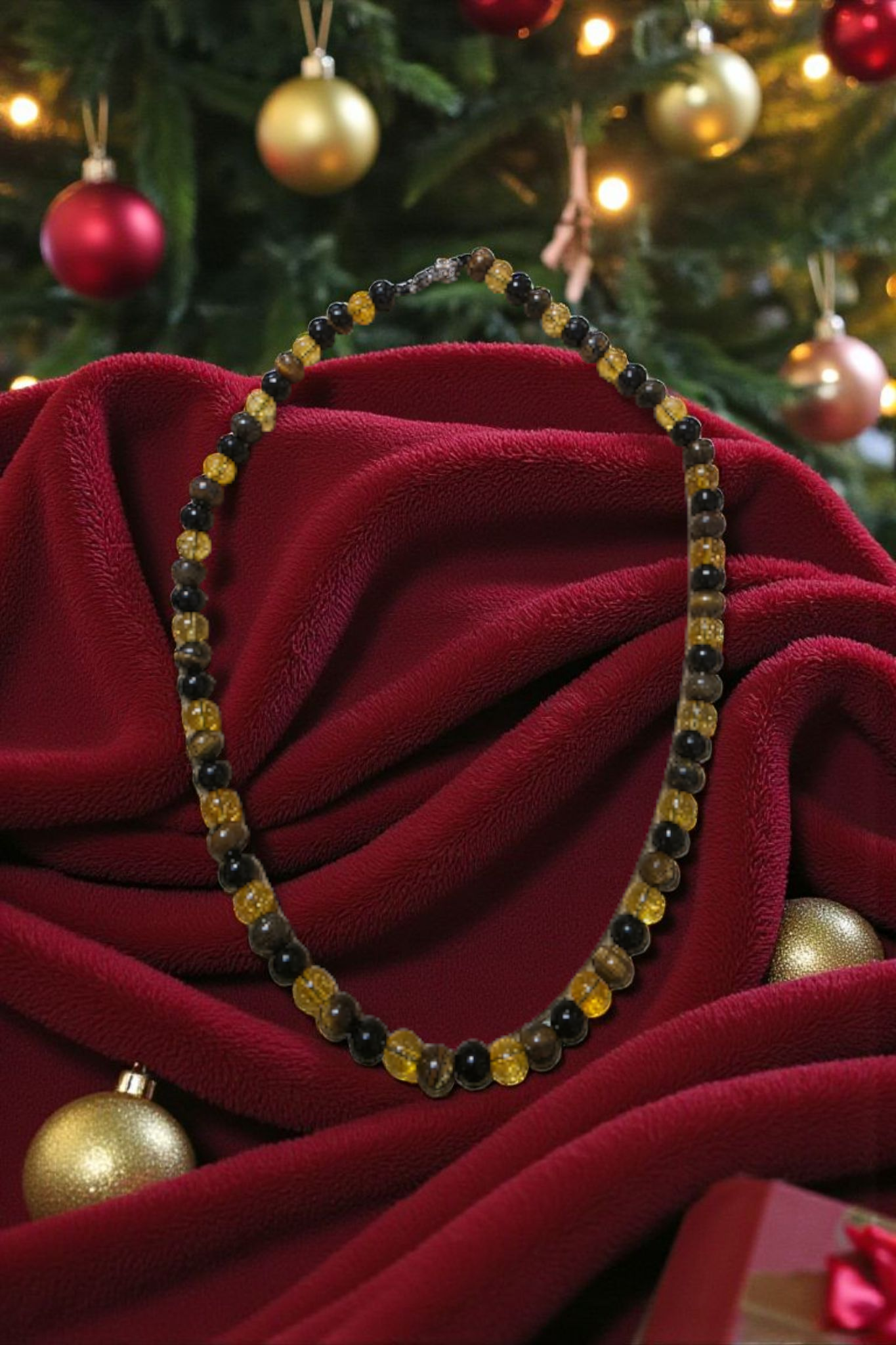 Tiger Eye, Obsidian, & Citrine Beaded Necklace