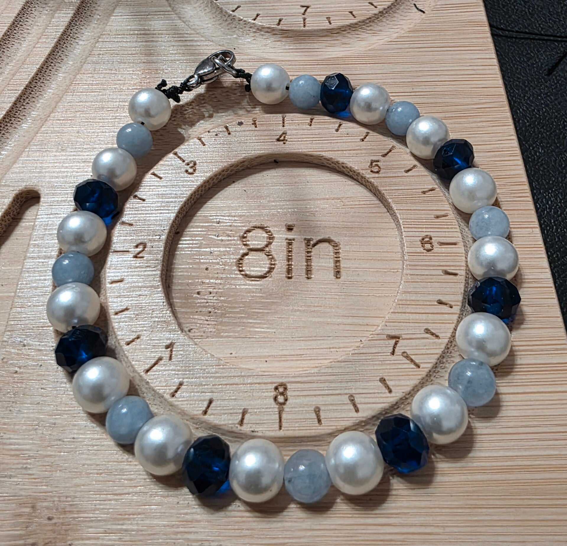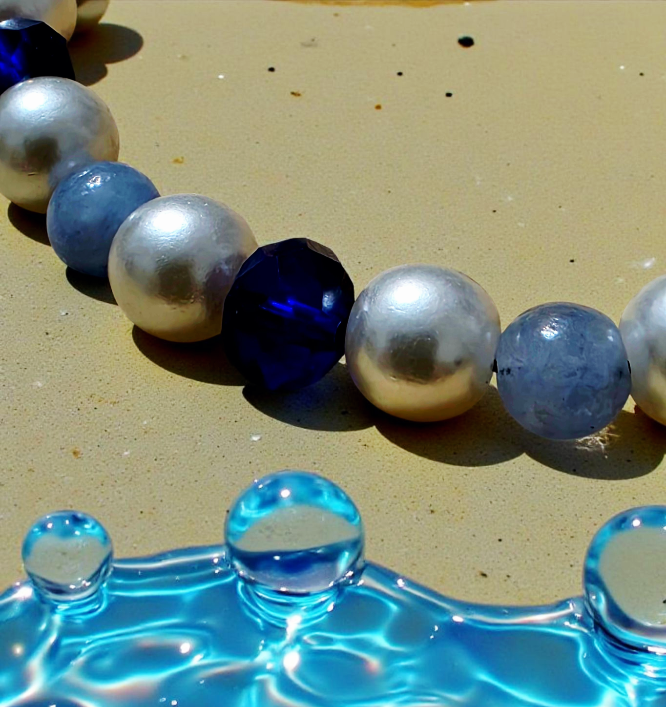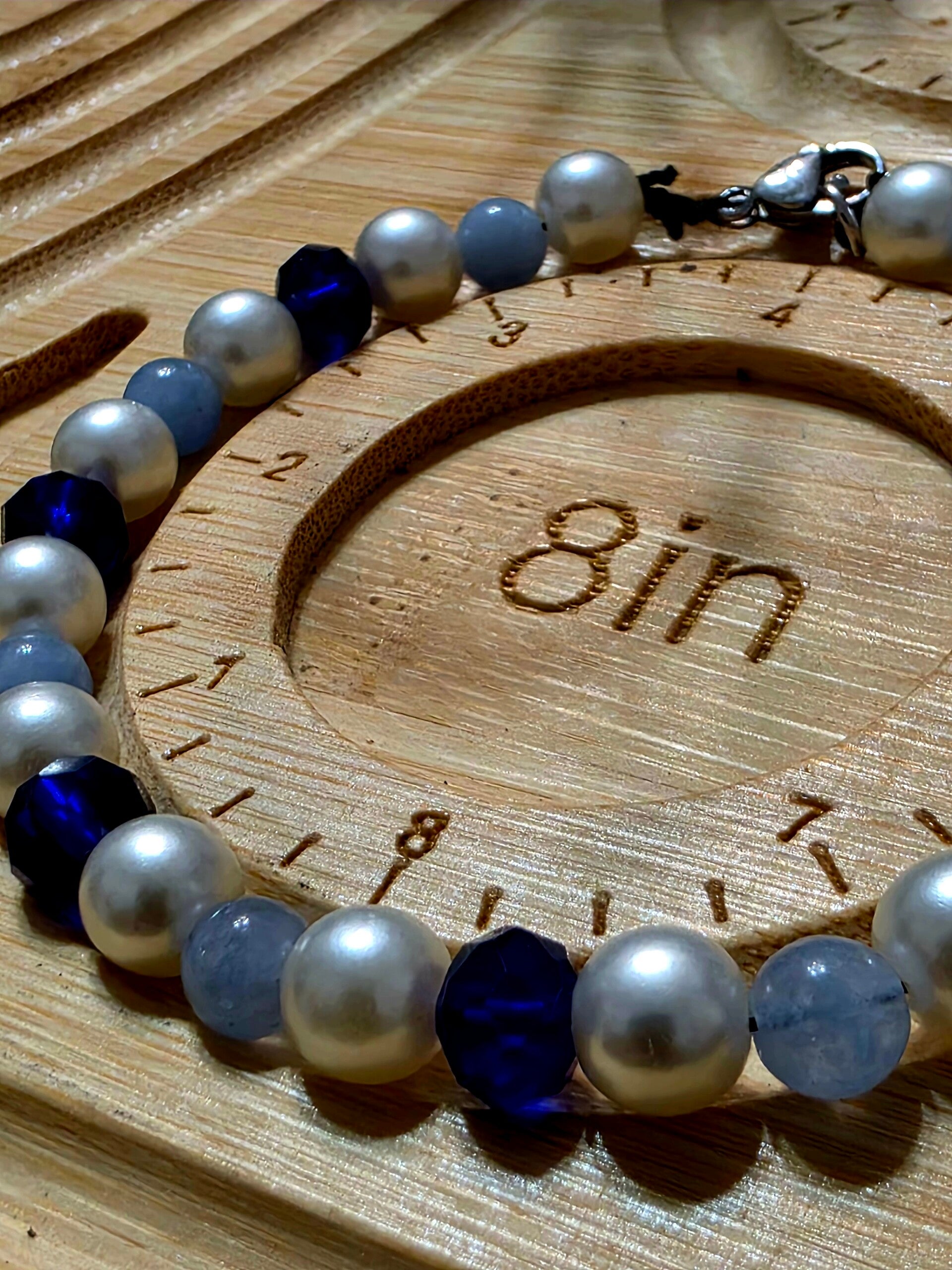 Embrace the serene beauty of the "Azure Dream" bracelet, a stunning piece that combines the classic elegance of pearls with the vibrant depth of blue gemstones and crystal. Perfect for adding a touch of sophisticated color to any outfit.