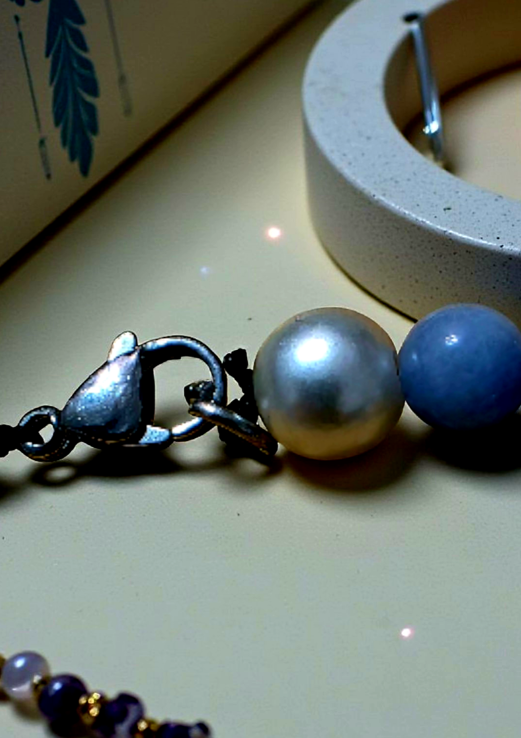 💎 Azure Dream 8-inch Pearl, Crystal, and Gemstone Bracelet