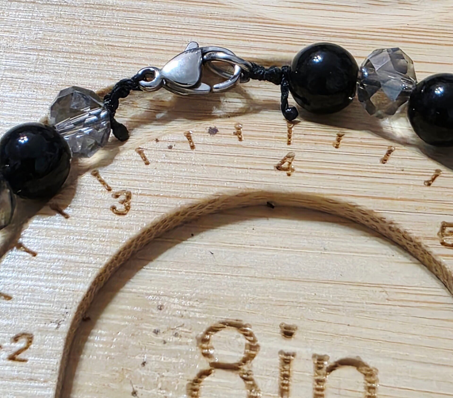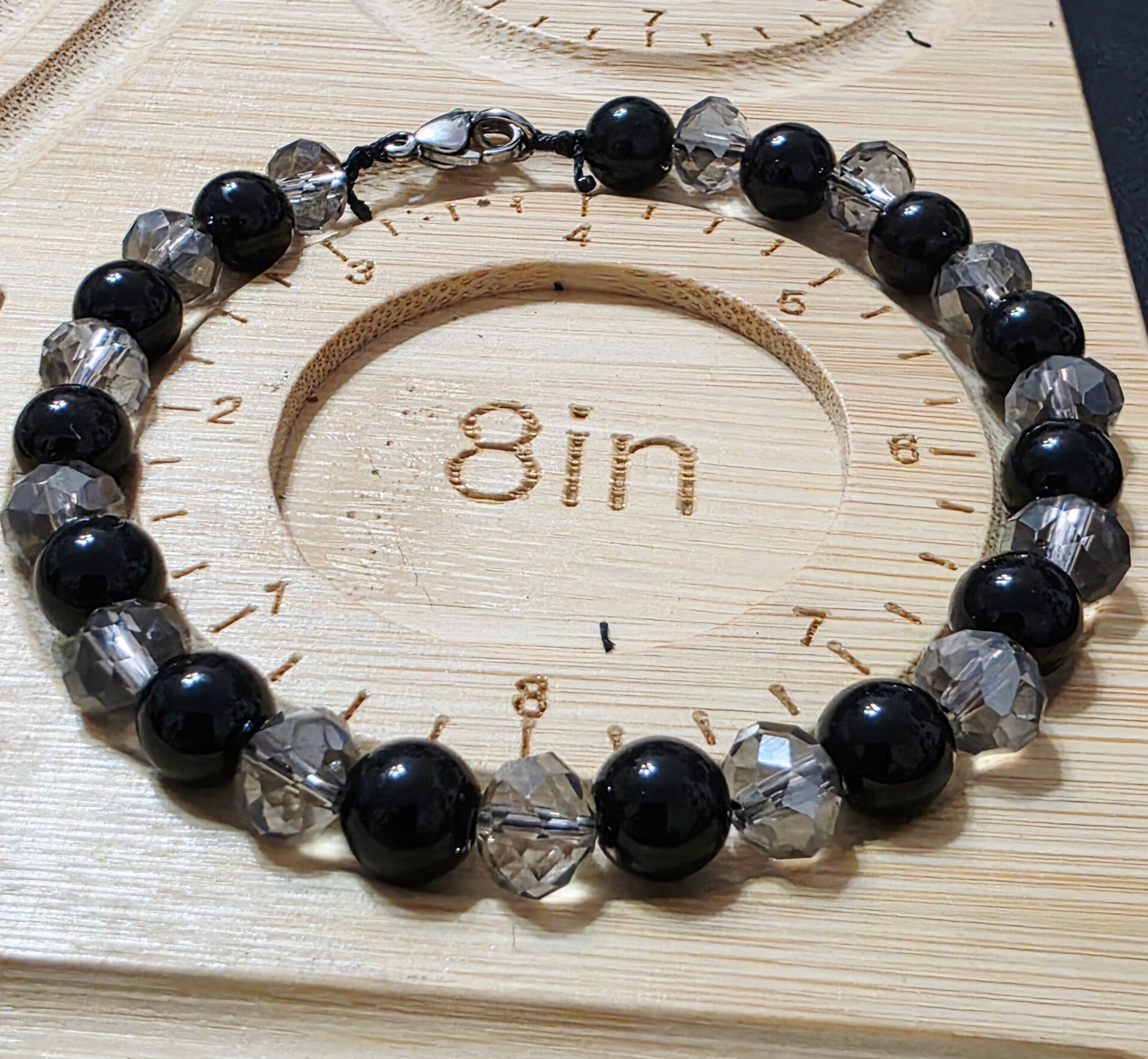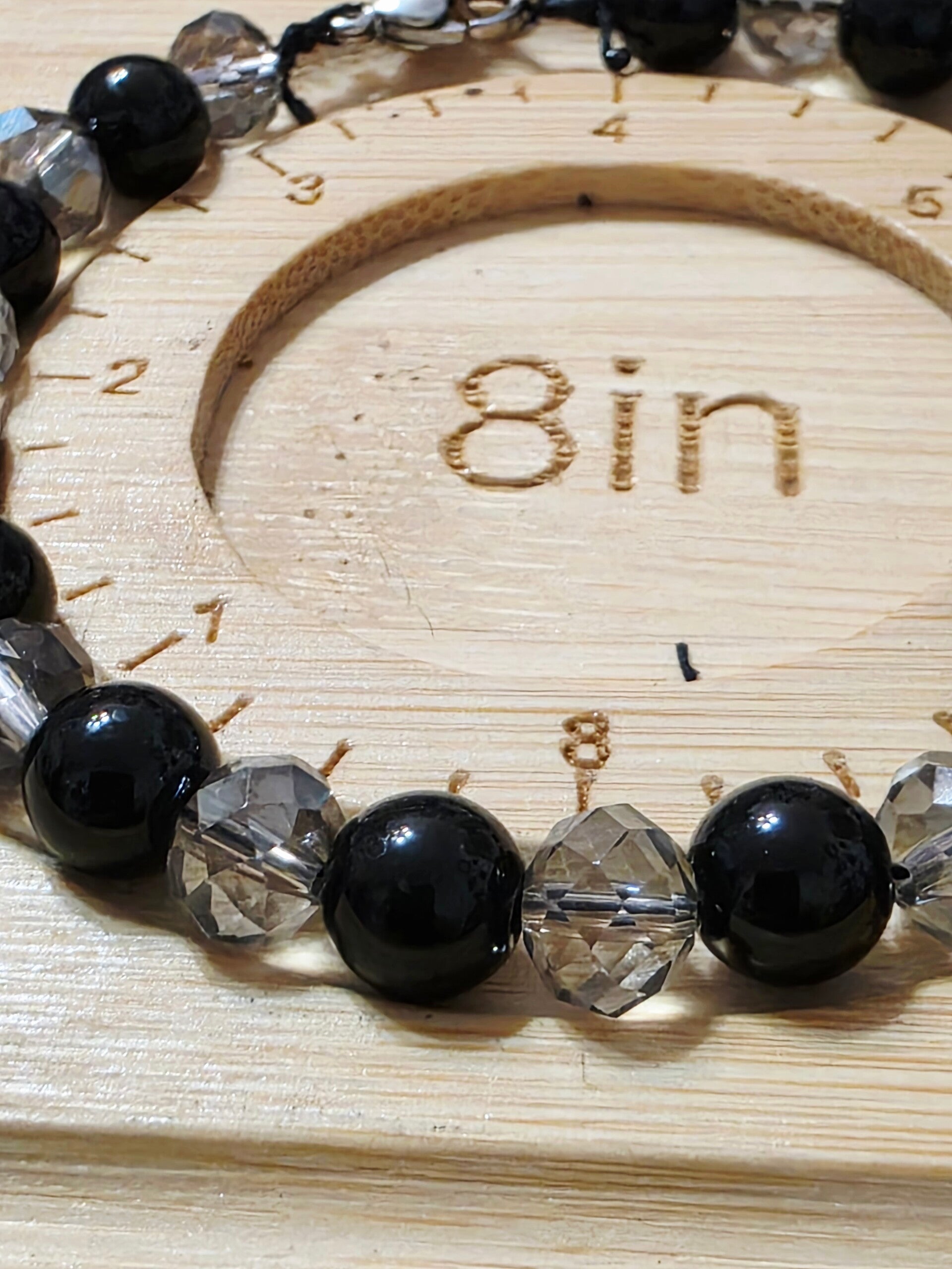 Elevate your style with this sophisticated bracelet, featuring a powerful contrast of deep black Obsidian and mysterious, faceted Smoky Crystal beads. This piece is perfect for those who favor bold, grounded, and subtly shimmering jewelry.