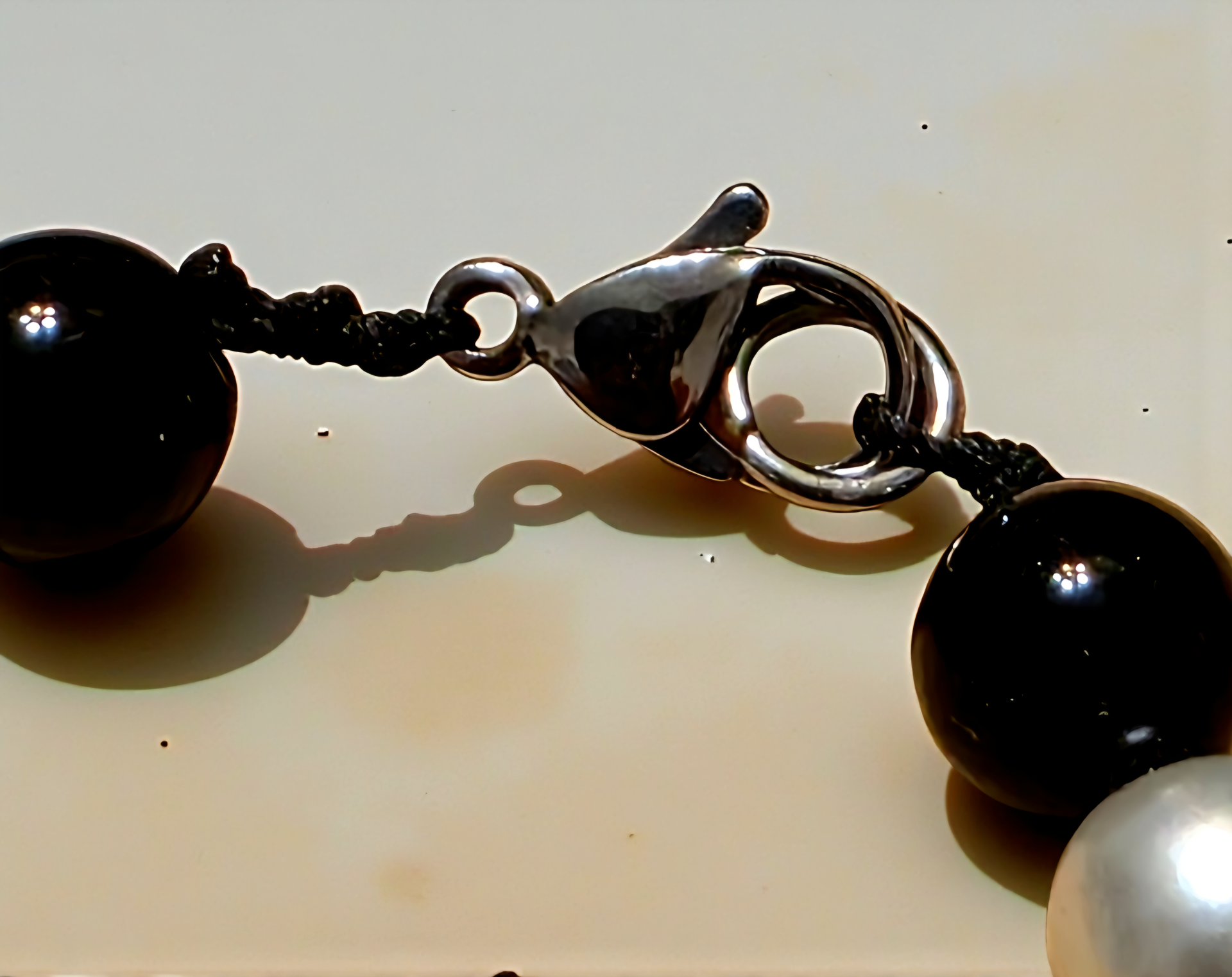 Achieve effortless sophistication with this 23-inch Obsidian and Pearl necklace. This timeless piece features alternating beads of glossy black Obsidian and shimmering white Pearls, creating a powerful, high-contrast look that transitions seamlessly from day to evening wear.